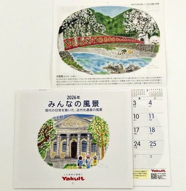 ヤクルトカレンダー「2026年みんなの風景~現代の日常を築いた、近代化遺産の風景~」を発行します。ヤクルトの商品をお届けするヤクルトレディやヤクルトビューティを通じて、2025年12月初旬から年末にかけてお客さまに配布し… 続きを読む »ヤクルトカレンダー「2026年みんなの風景 ~現代の日常を築いた、近代化遺産の風景~」を発行