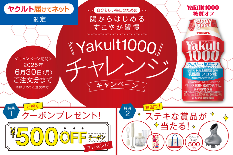 応募期間内に「ヤクルト届けてネット」で「Yakult1000」 または「Yakult1000 糖質オ